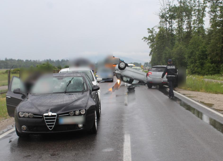 Prometna nesreča blizu letališča Brnik, posneto 27. junija 2023.