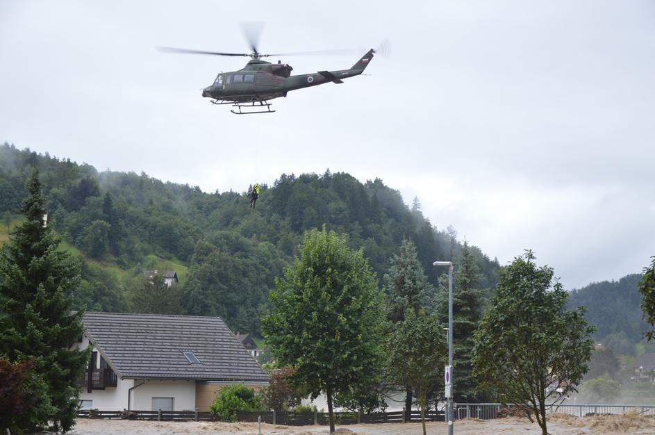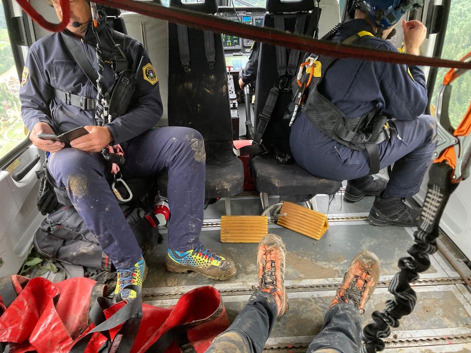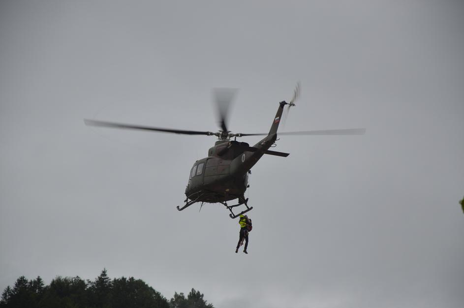 Evakuacija s helikopterjem v Škofji Loki.