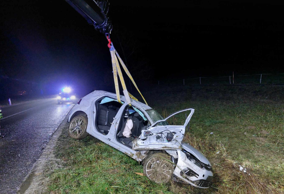 Prometna nesreča, avto v jarku, Zalog pod Sveto Trojico