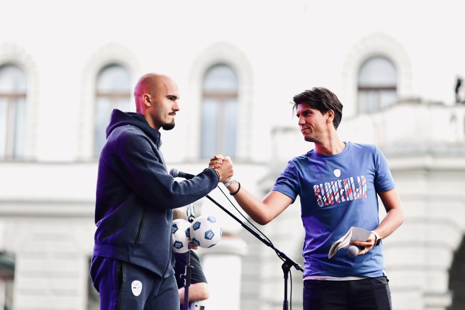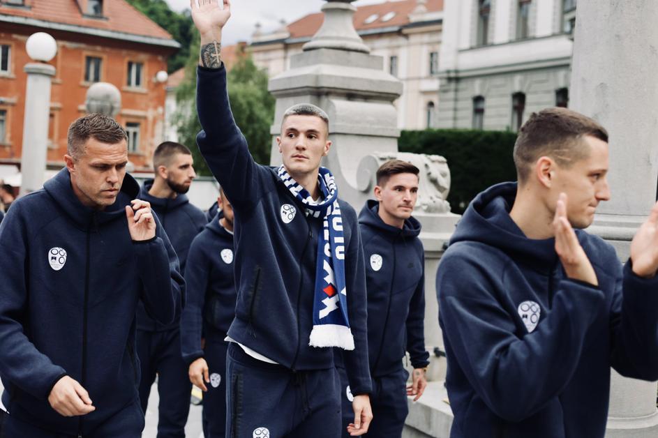 Zbrani na Kongresnem trgu, nogometaši stopili pred navijače