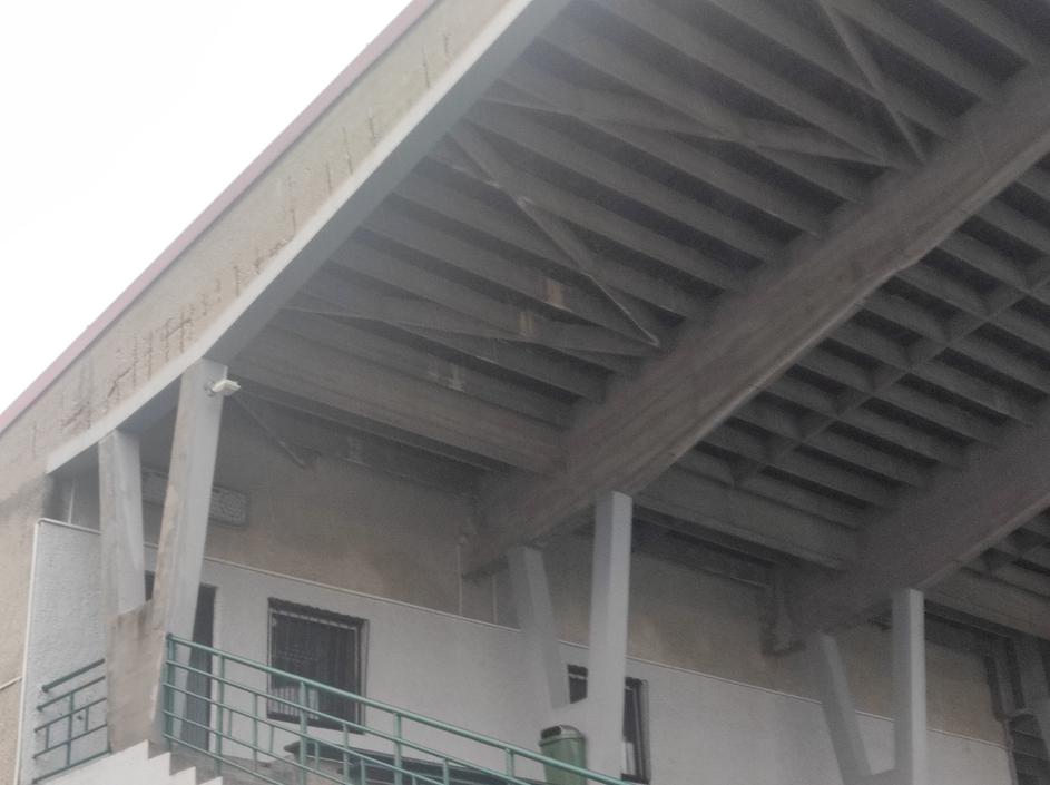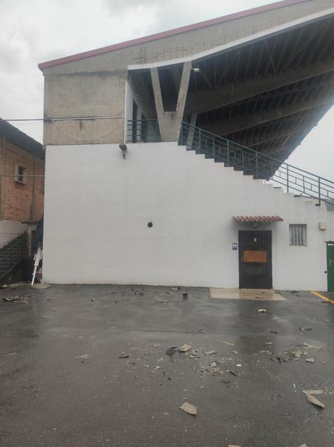 Odpadli deli strehe na stadionu Rudar v Trbovljah.