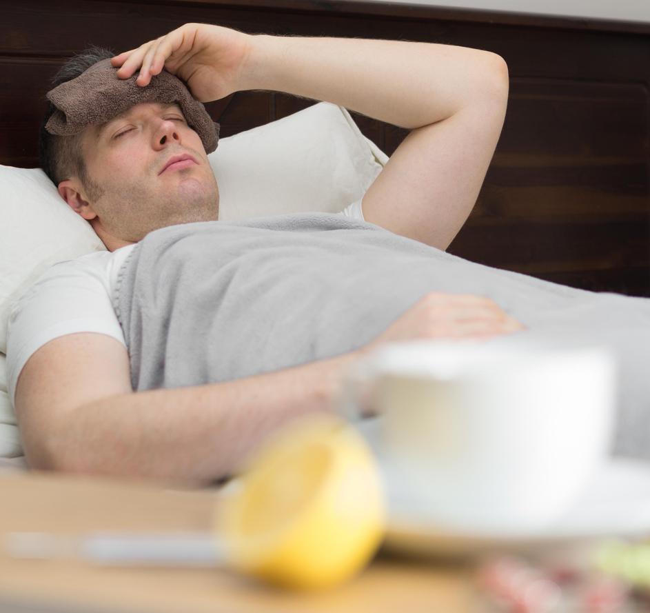 prehlad, gripa, slabo počutje, bolan moški
