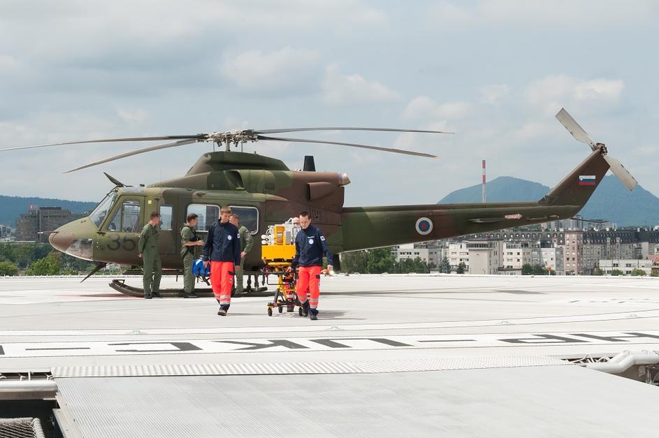 Helikopter SV na heliportu UKC Ljubljana
