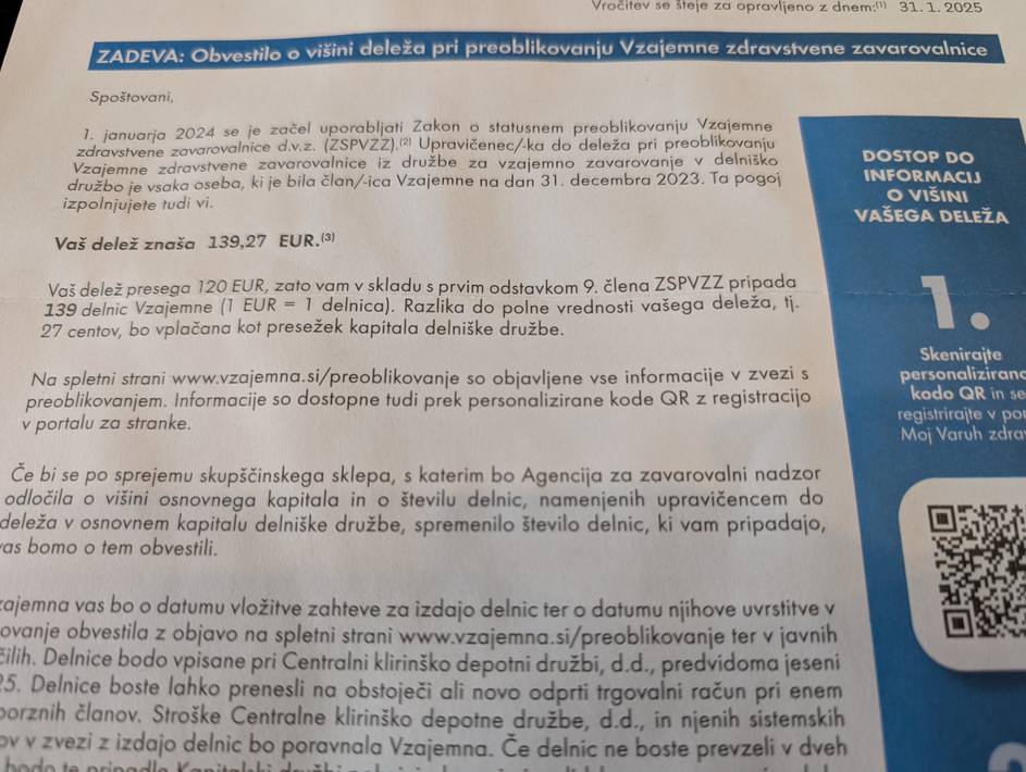 Dobil sem obvestilo Vzajemne, kaj moram storiti