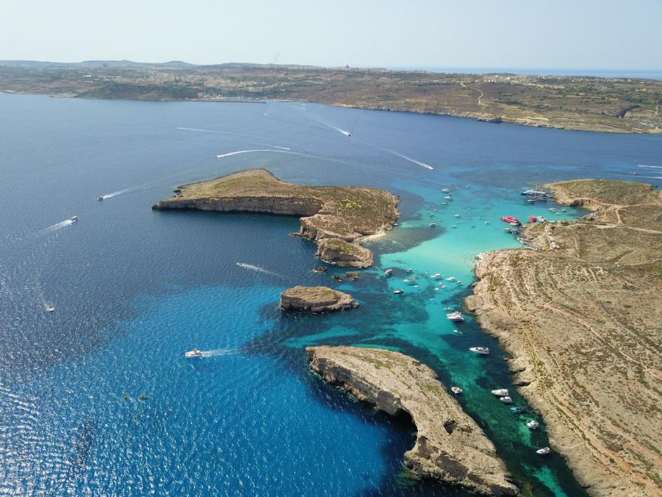 Pogled na Modro laguno na malteškem otočku Comino.