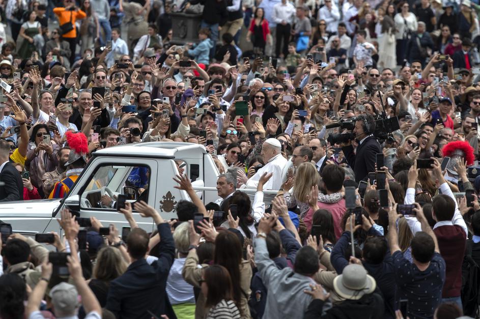 Po blagoslovu je vernike 15 minut pozdravljal iz "papamobila".