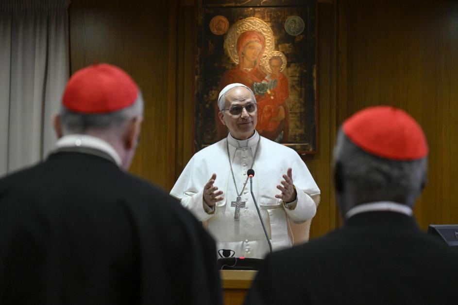 papež Leon XIV. na srečanju s kardinali