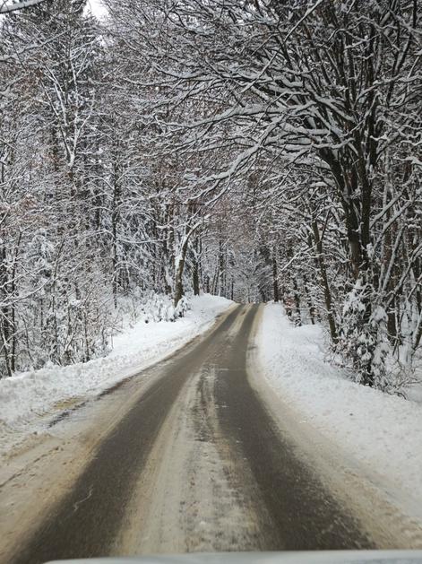 Zasnežena cesta, sneg, poledica, zima, vreme