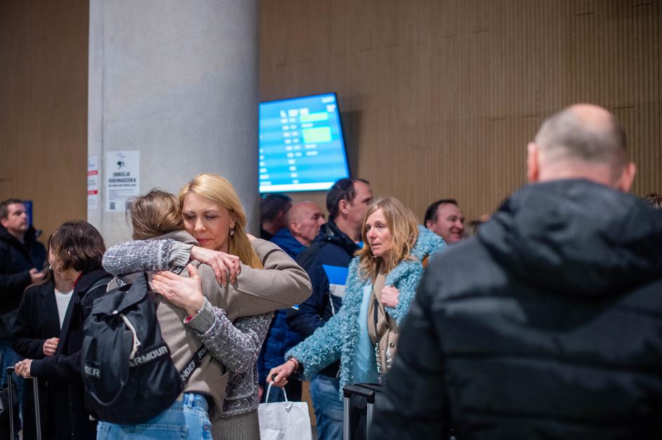 Letalo pristalo na Brniku: Letališče prizorišče sreče, solz in objemov