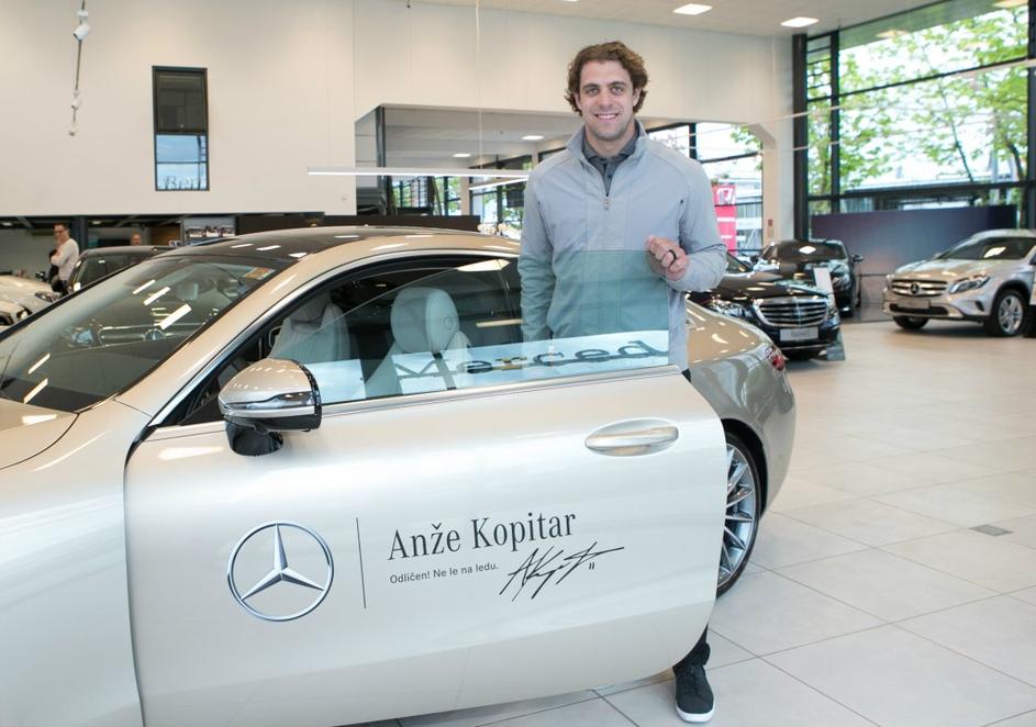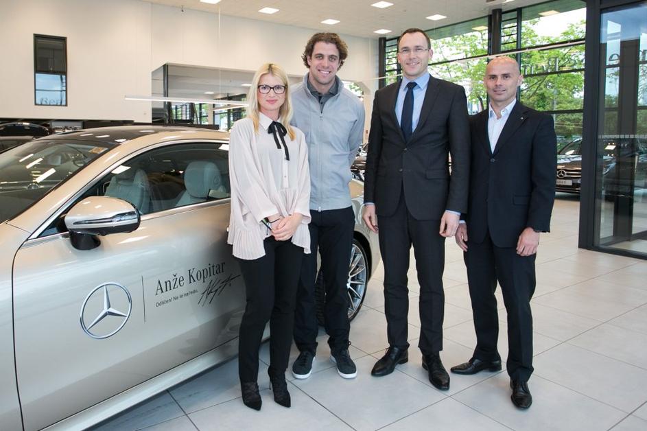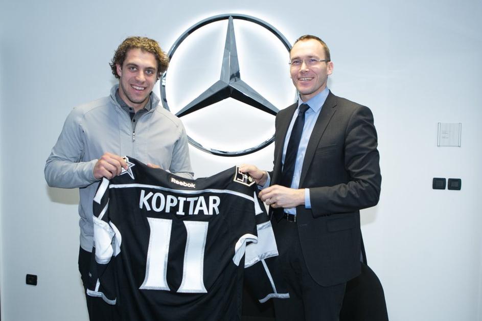 Anže Kopitar je novi ambasador znamke Mercedes-Benz. Sponzorsko vozilo, kupe razreda E, je Anžetu Kopitarju predal direktor podjetja Autocommerce, Rasto Oderlap.