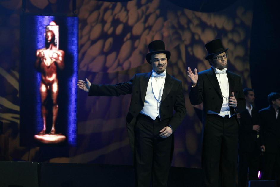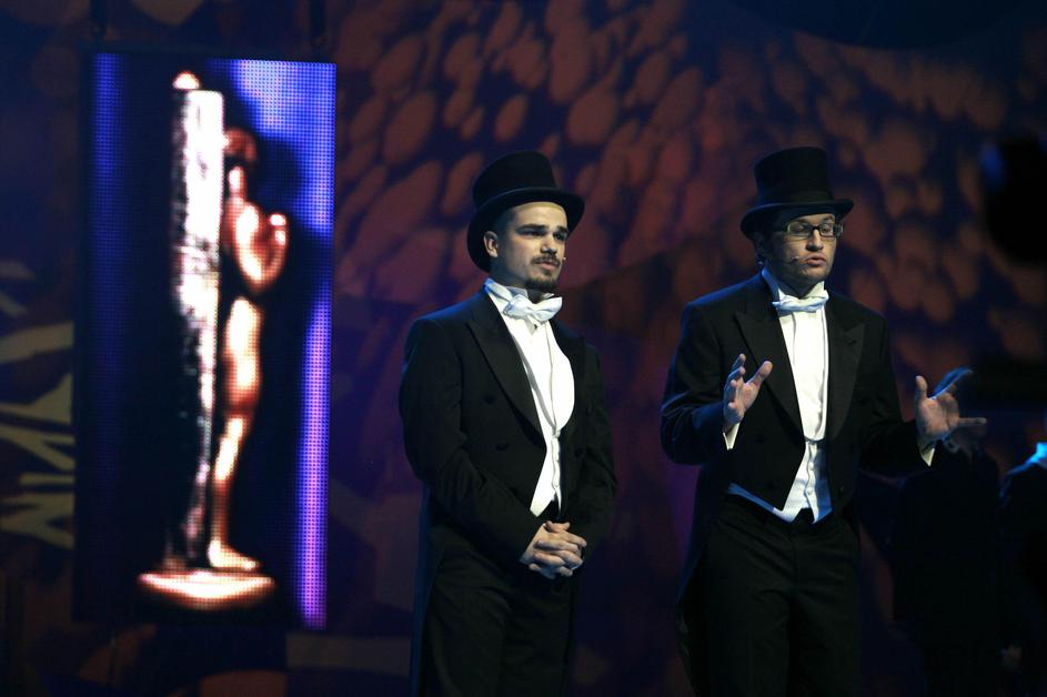 Sandi Salkič in Špela Šipek z viktorjem za oddajo 24UR