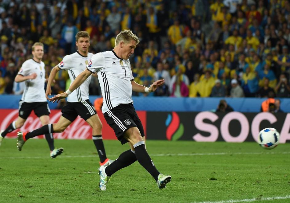 Odločitev o zmagovalcu je padla v 92. minuti, ko je s tem strelom zabil Bastian Schweinsteiger.