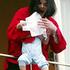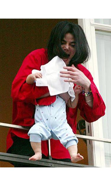 Berlinu je leta 2002 zastal dih. Michael je svojega sina Princea Michaela II. z eno roko držal nad o