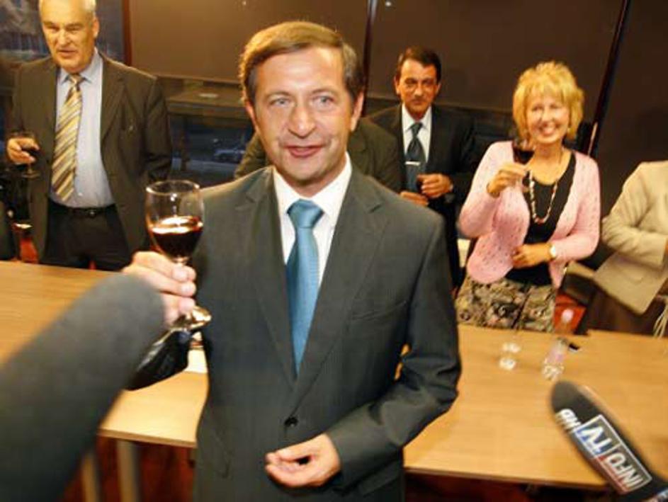 Karel Erjavec nazdravlja volilnim rezultatom.