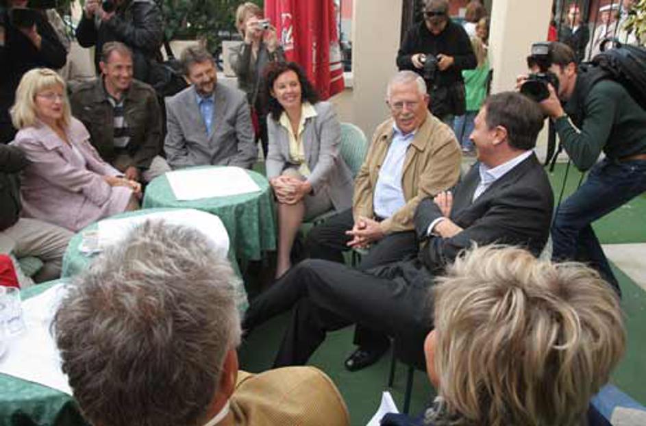 Janez Janša v družbi svojih strankarskih kolegov