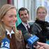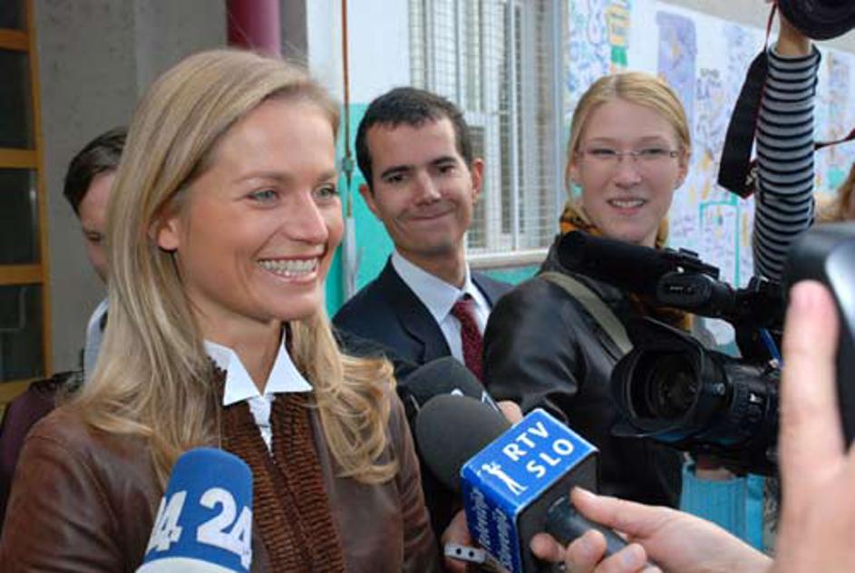 Katarina Kresal daje izjavo po obisku volišča.