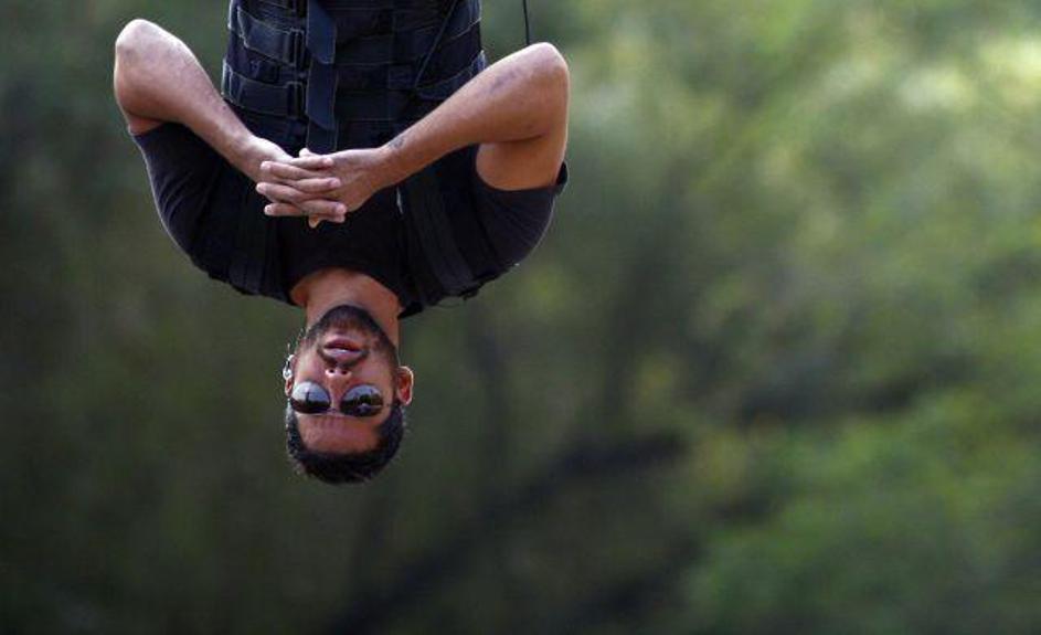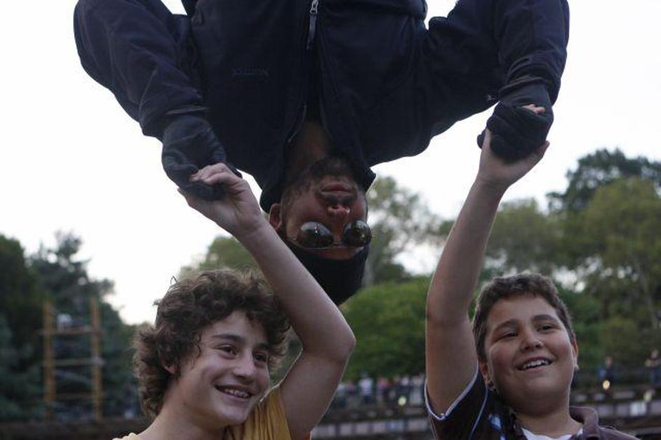 Njegov podvig spremlja na tisoče radovednežev.