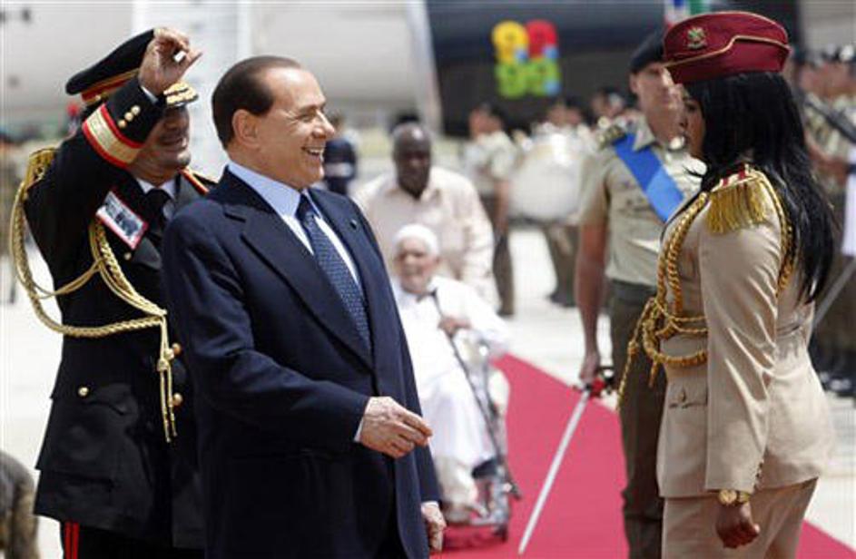 Gadafi na obisku pri Berlusconiju
