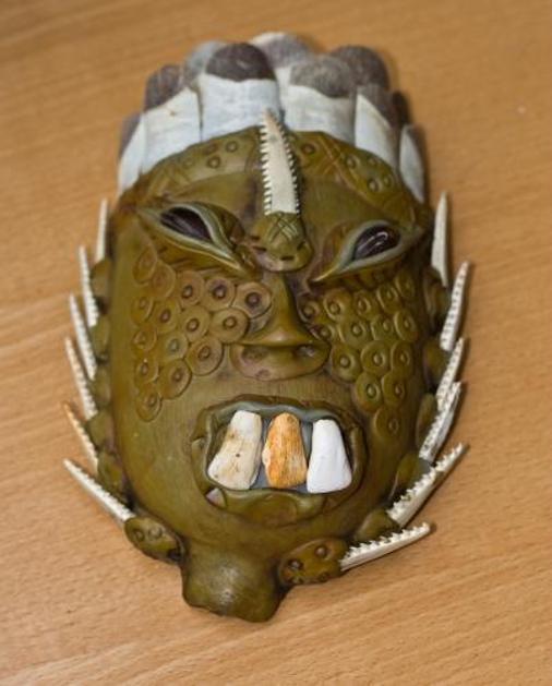 Maska iz ribjih kosti in lusk Arapaima Gigas