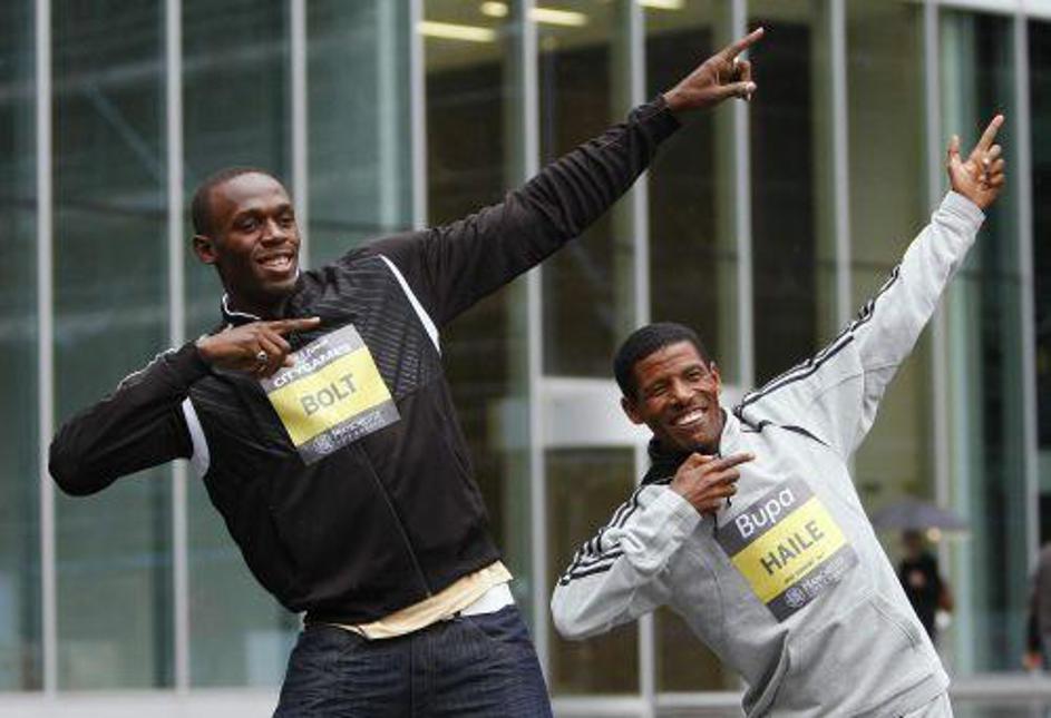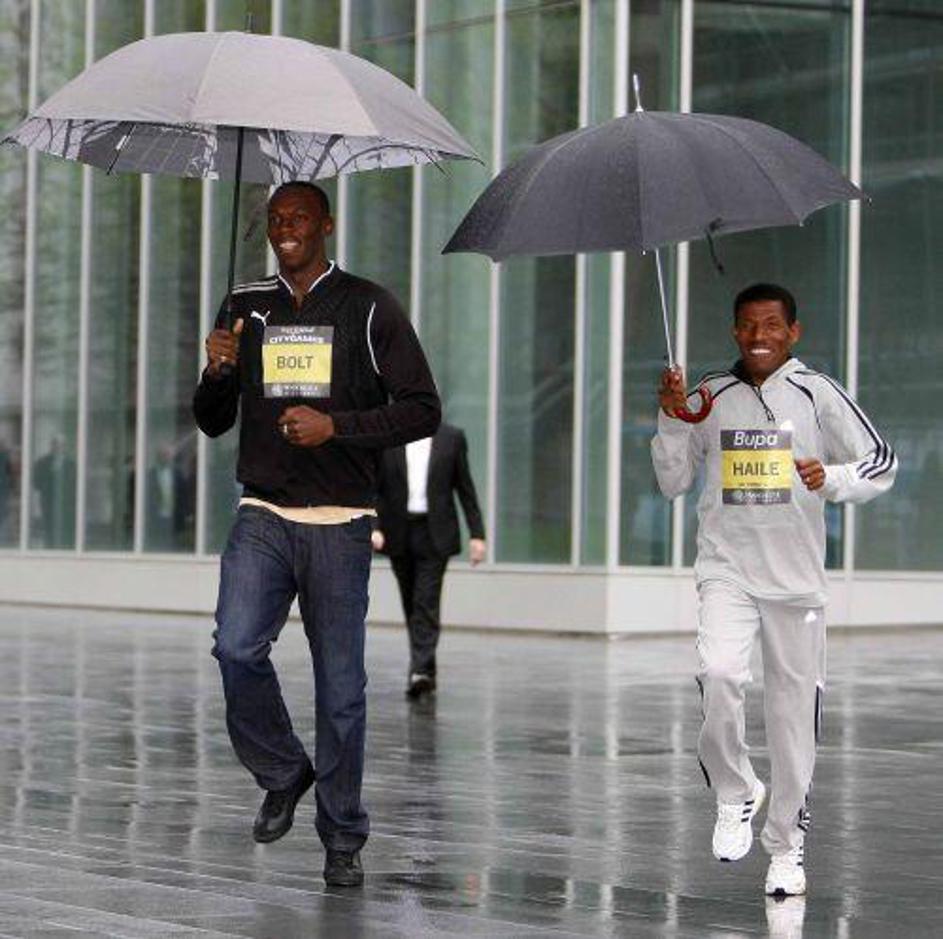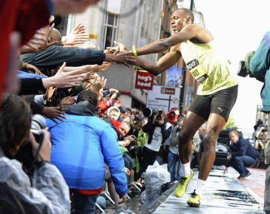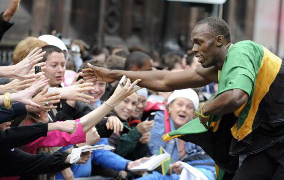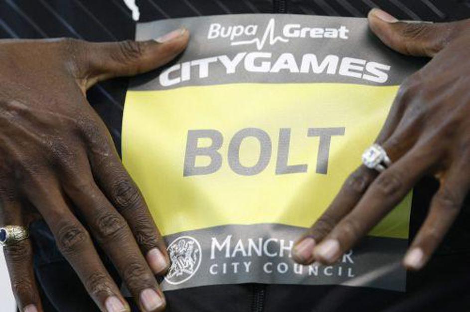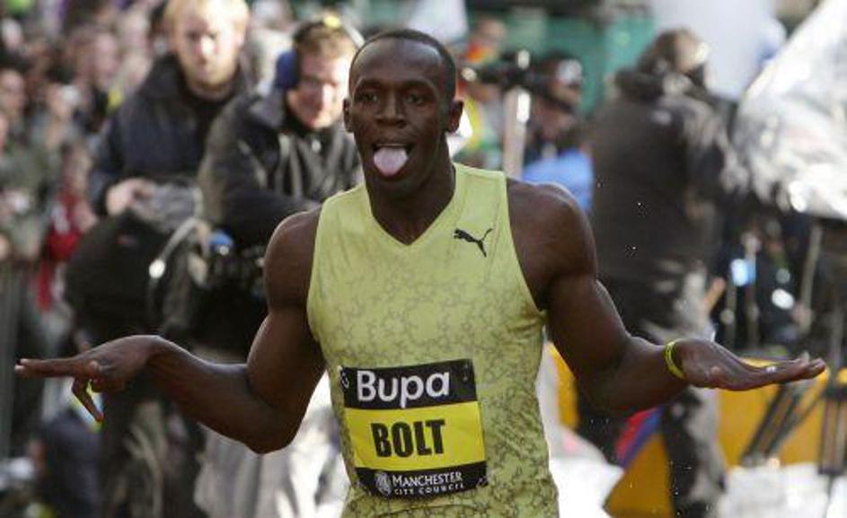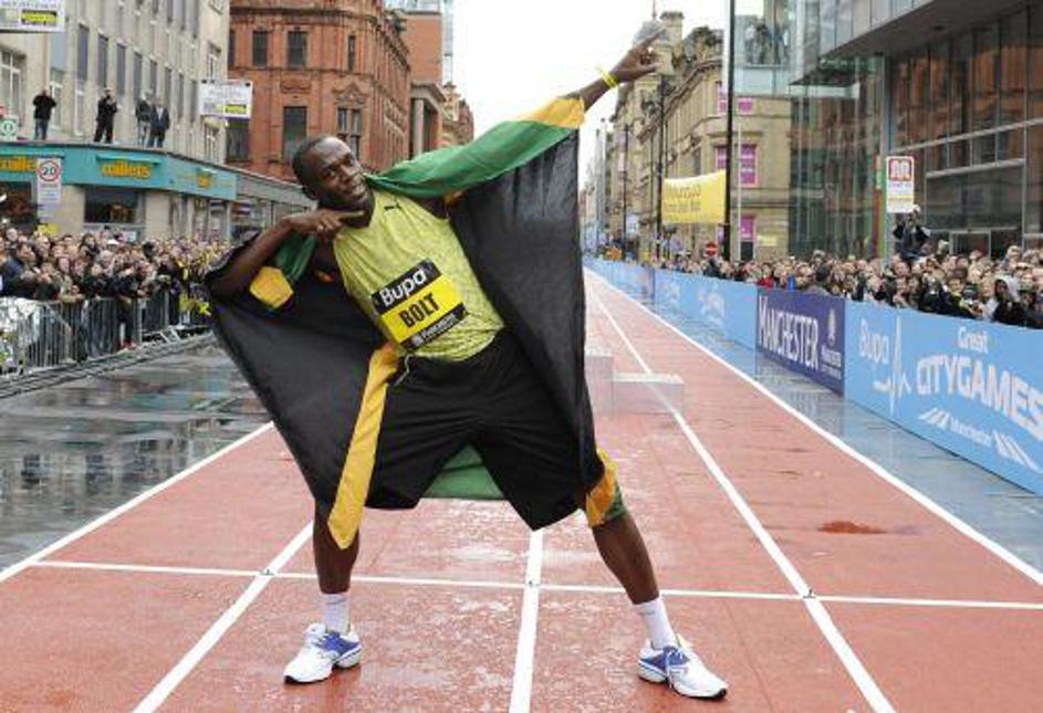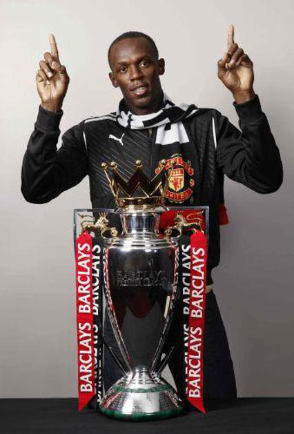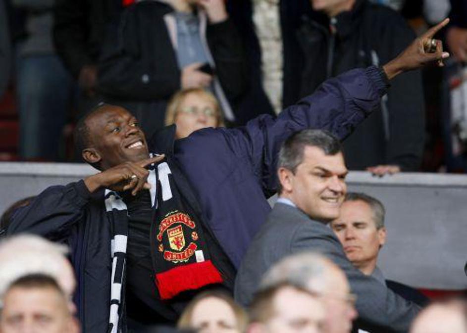 Bolt napoveduje zmago Manchester Uniteda v finalu Lige prvakov v nogometu. (Foto