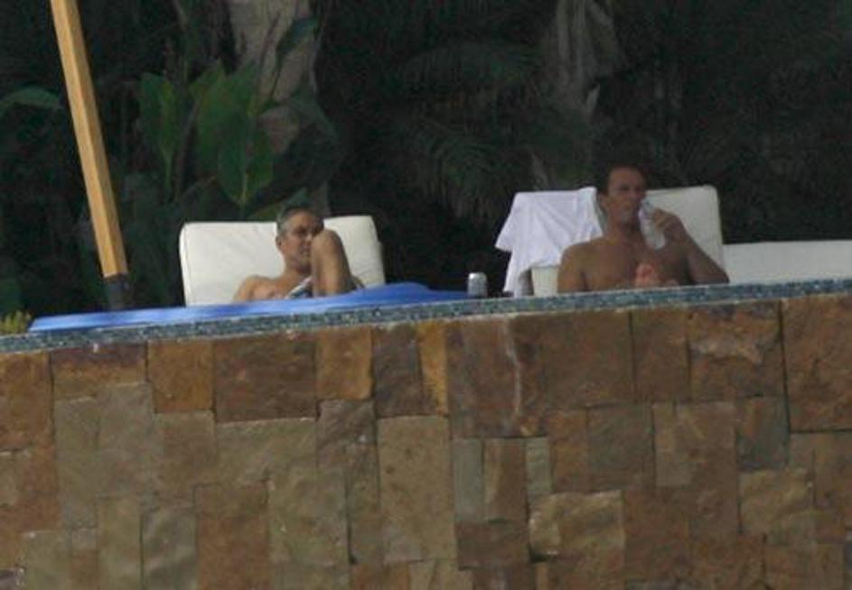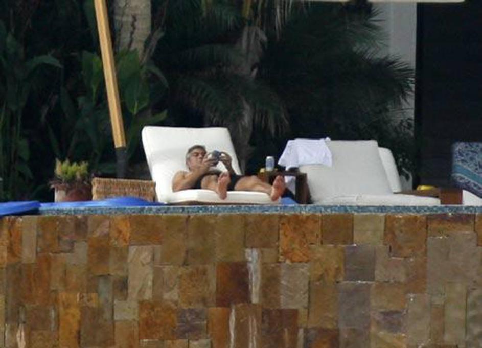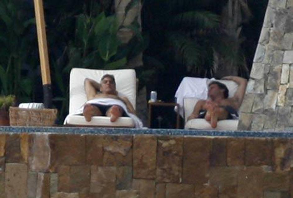 George Clooney se sonči v moški družbi.