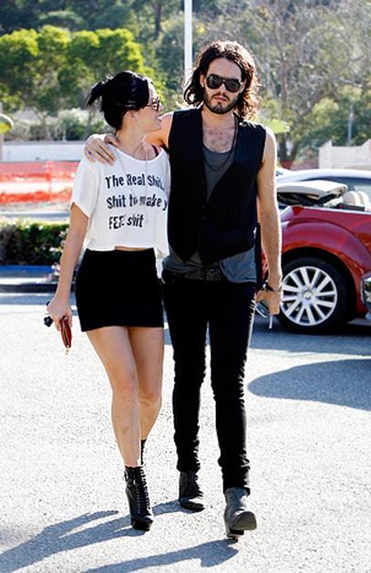 Katy Perry in Russell Brand: Ona se je vanj popolnoma zaljubila, on pa deluje nervozen zaradi tega.