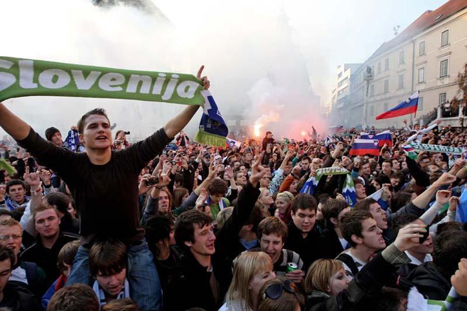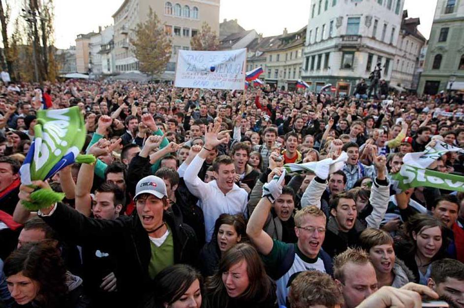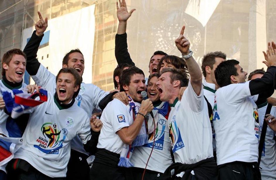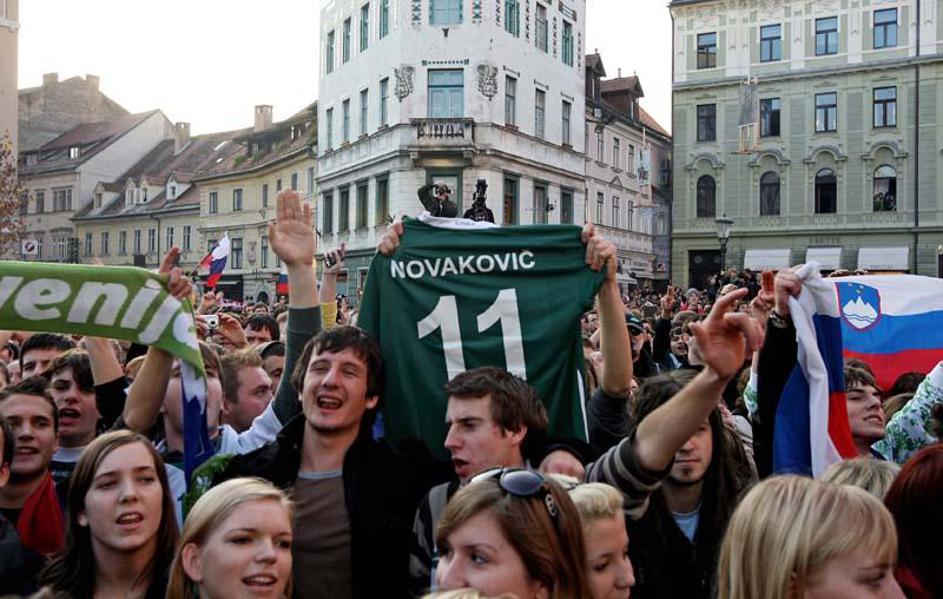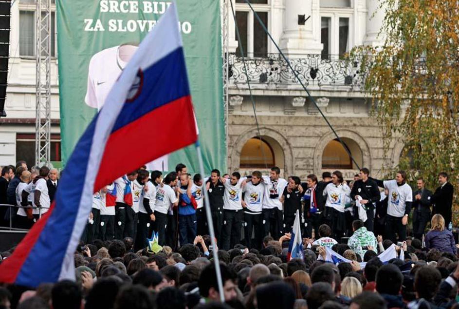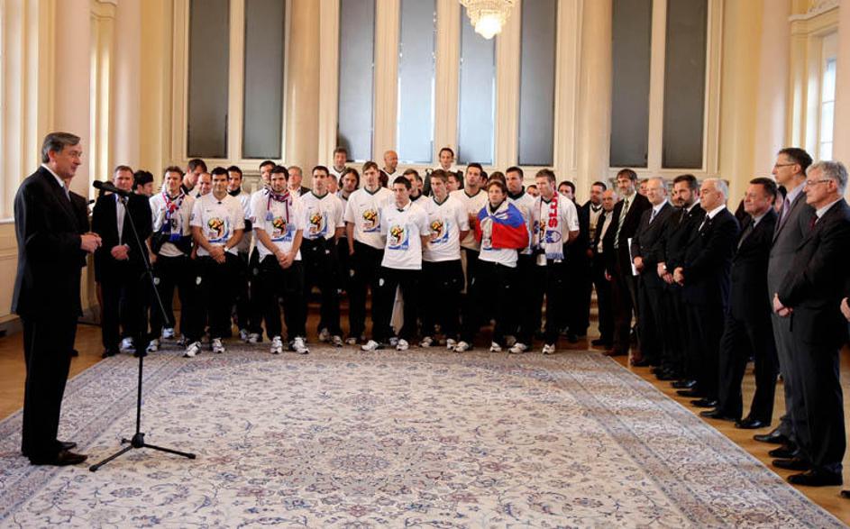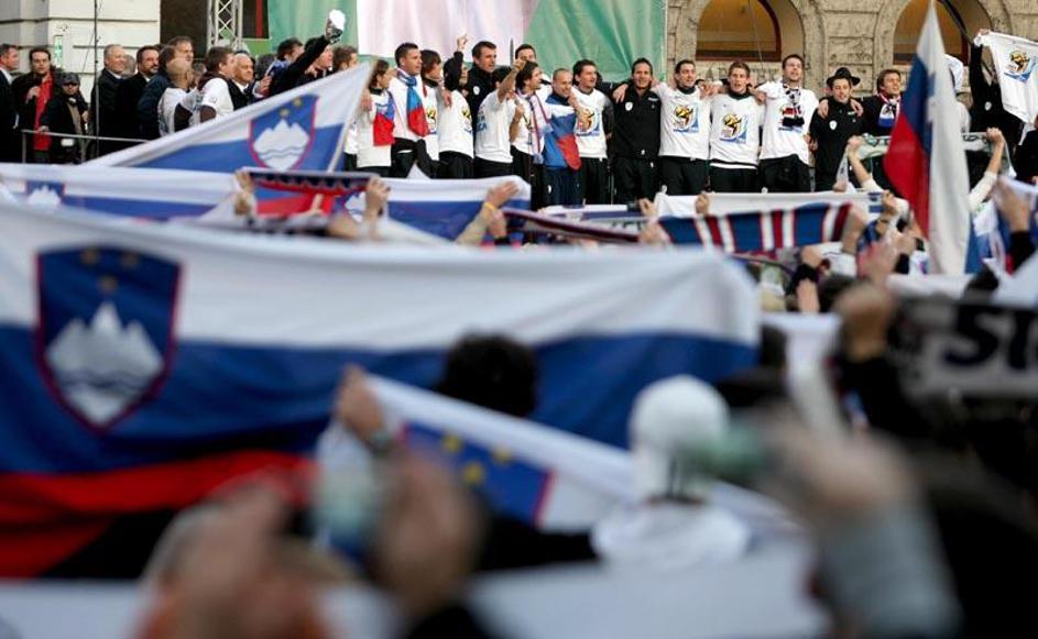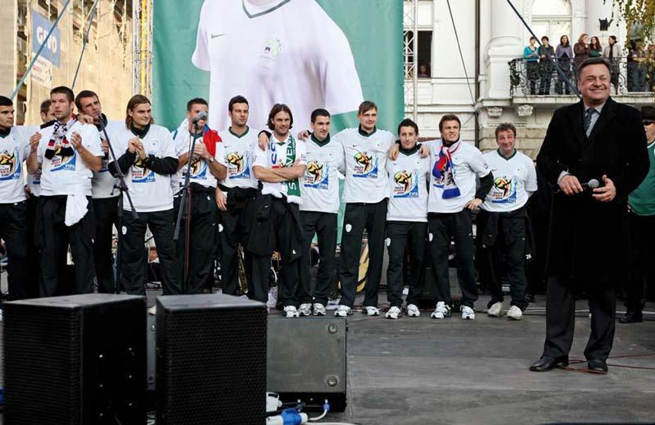 Slovenija gre na SP 2010 Sprejem Ljubljana Prešernov trg predsednik Turk župan J