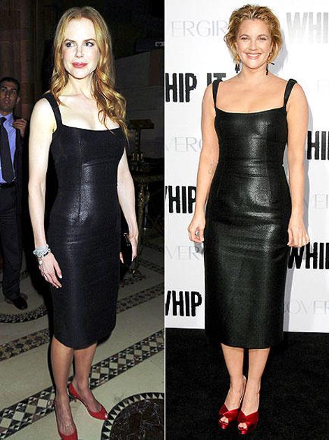 Nicole Cidman vs. Drew Barrymore: Za usnjeno črno obleko potrebujete dvoje - pogum in dobro postavo.