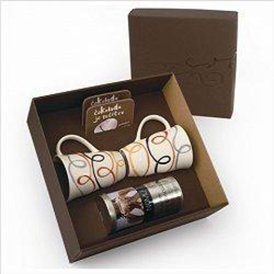 Ljubiteljica čokolade bo navdušena nad darilnim setom dveh skodelic, pripravka za vročo čokolado in
