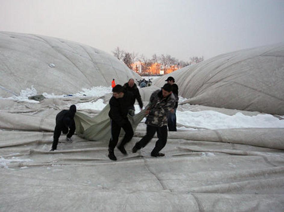 Čiščenje sesedlega balona za Bežigradom