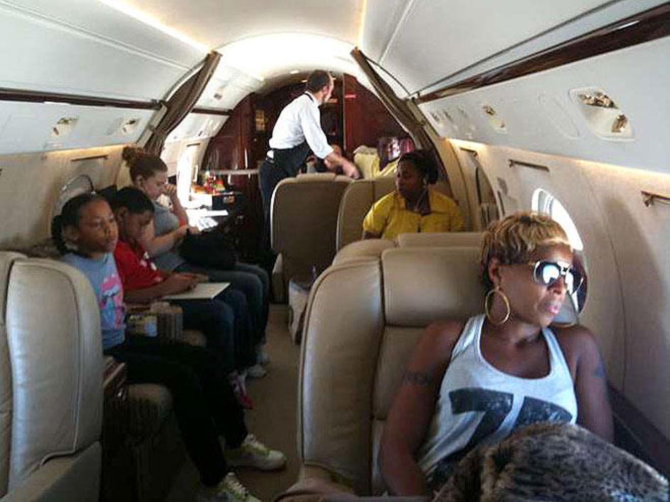 Mary J. Blige v svojem zasebnem letalu z družino. Letijo nad Bermudo, ki je pevko čisto prevzela.