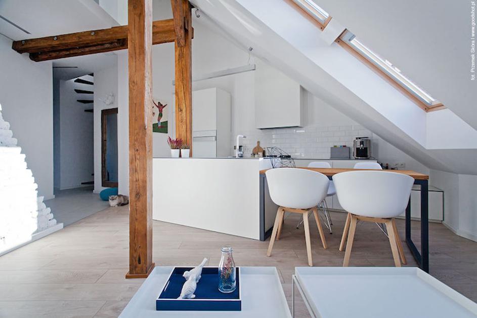 Svetlo podstrešno stanovanje na Poljskem