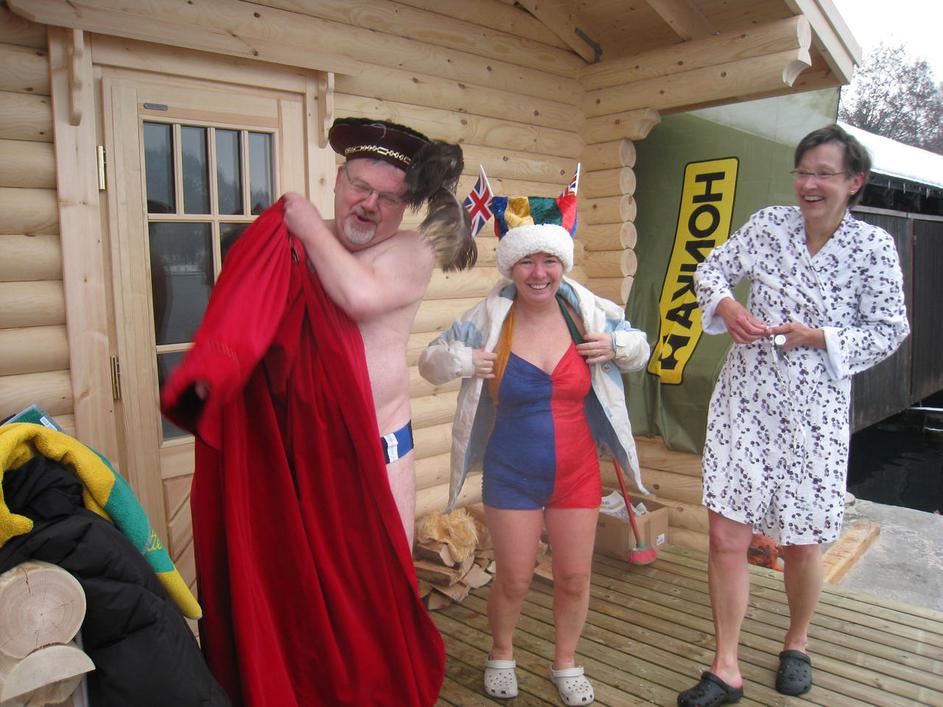 Blejski župan Janez Fajfar in Laura Kakko, finska veleposlanica v Sloveniji (levo), sta po namakanju Žurnal24
