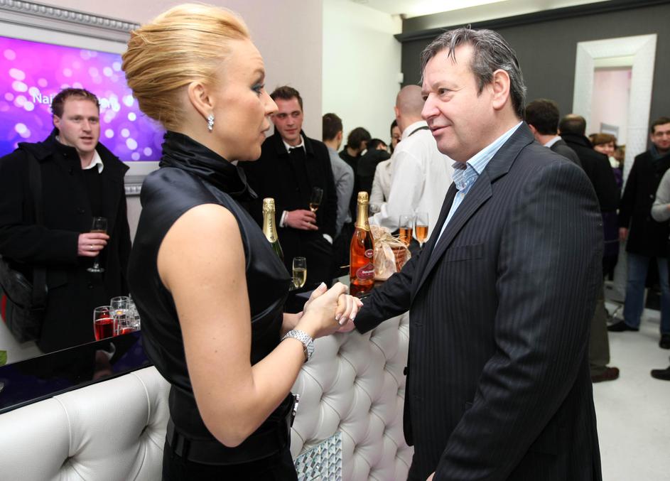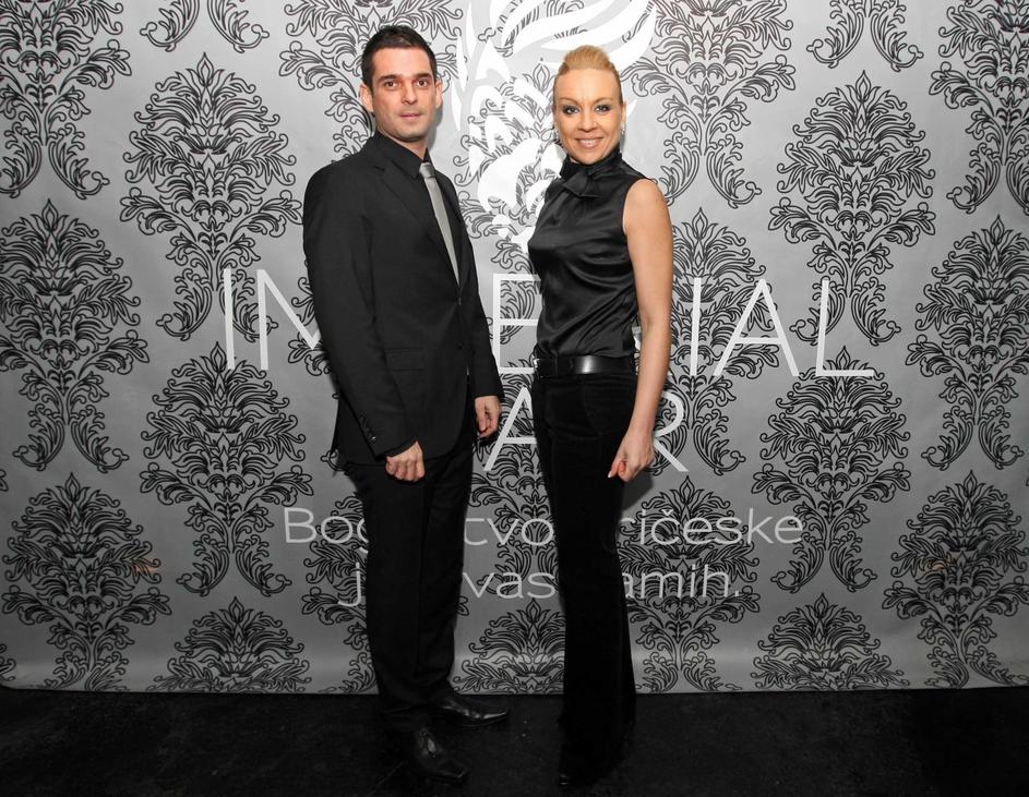 Lastnika salona na odru s povezovalcem večera Urošem Smolejem