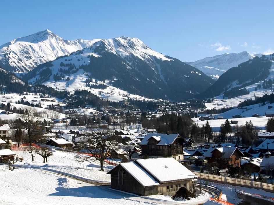 Gstaad, Švica. Vasica v nemško govorečem delu Švice je eno najbolj ekskluzivnih in najdražjih smučar