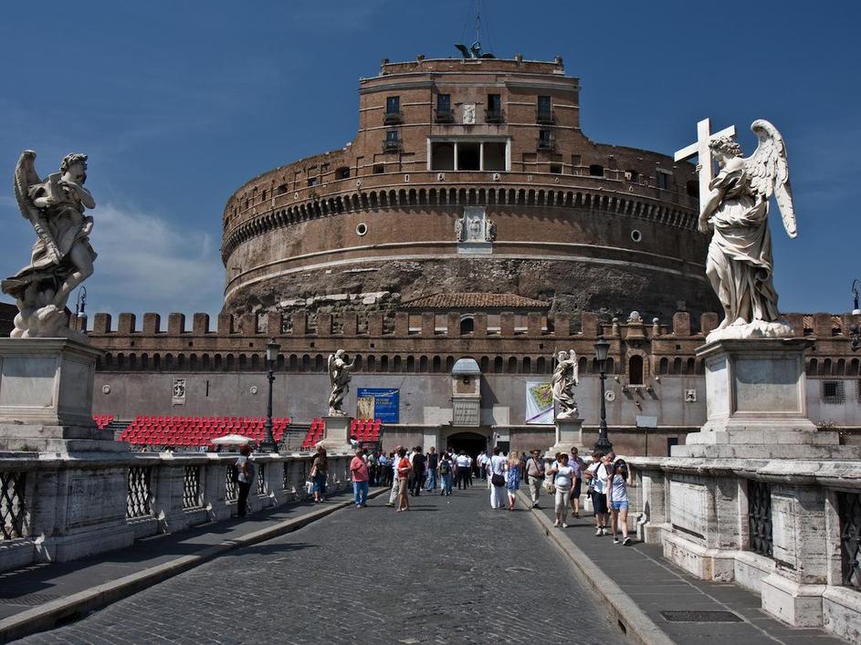 Angelski grad. Papeški grad Castel Sant'Angelo je prava utrdba z debelimi zidovi in dvižnimi mostovi