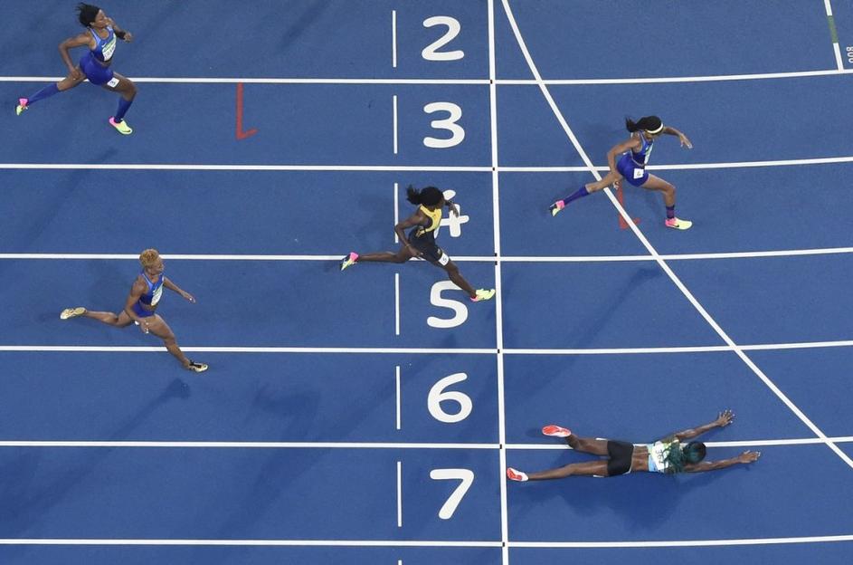 Dogodki Rio 2016Bahamčanka Shaunae Miller je ob koncu teka na 400 metrov izgubila ravnotežje, a s padcem v cilj za las premagala Američanko Allyson Felix. Profimedia