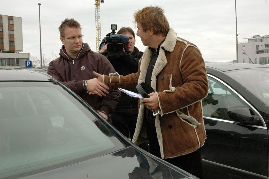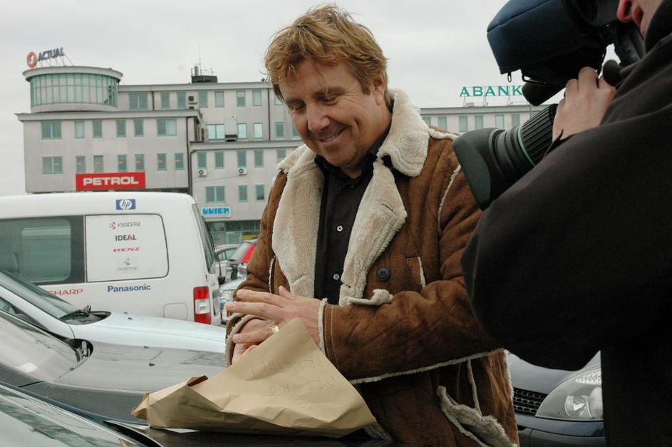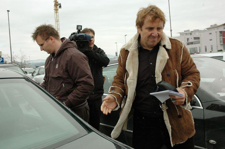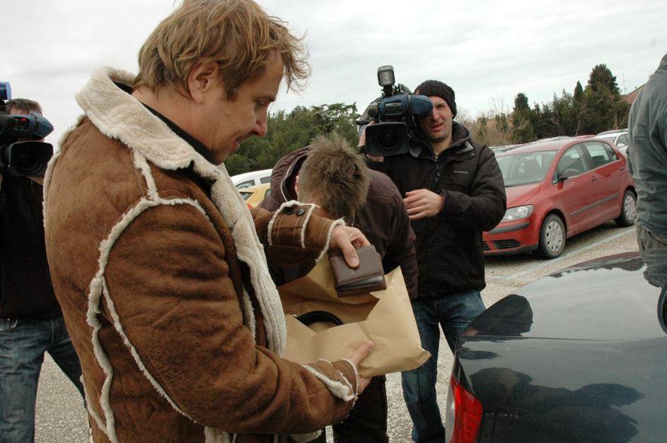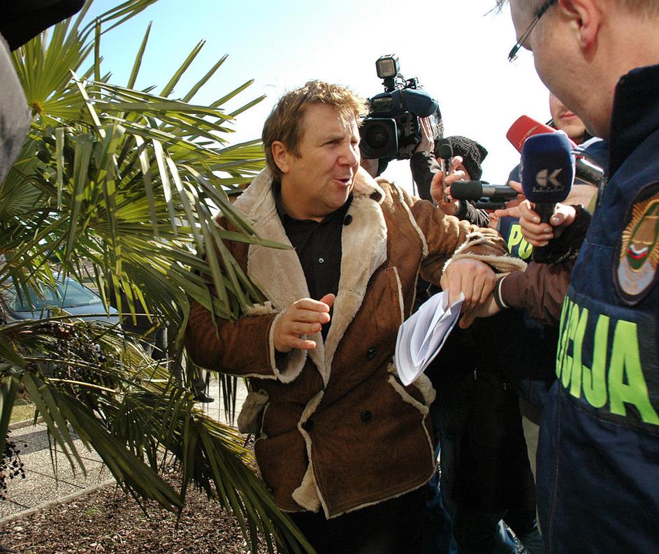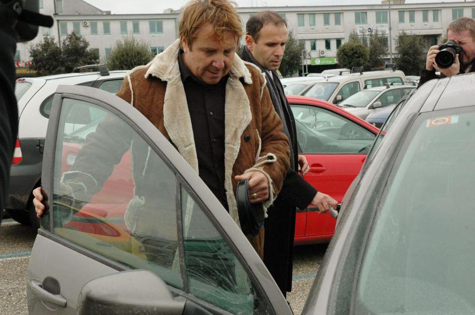 Srečko Prijatelj izstopa iz policijske marice.