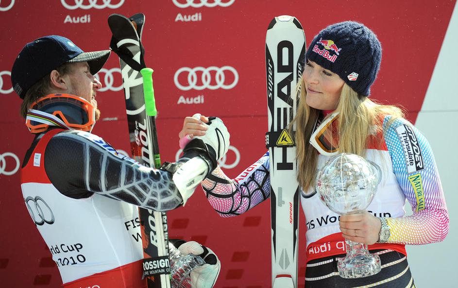 Carlo Janka (Švi) in Lindsey Vonn (ZDA)
