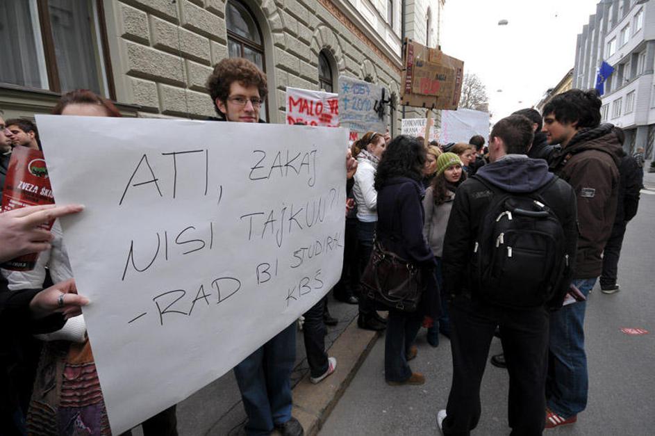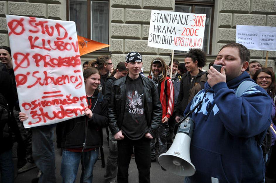 Protest študentov zaradi, vladi so predali paket jajc.
