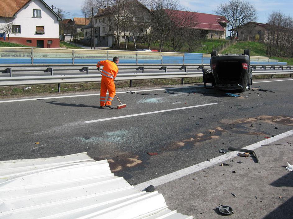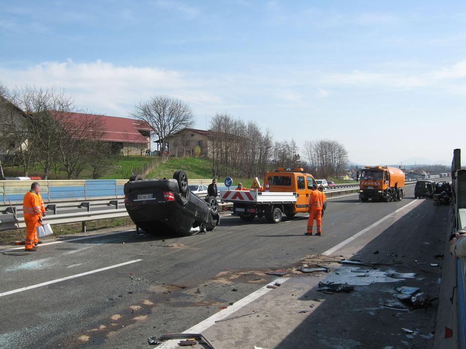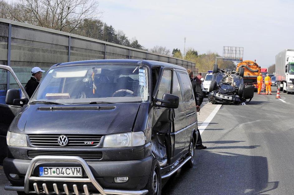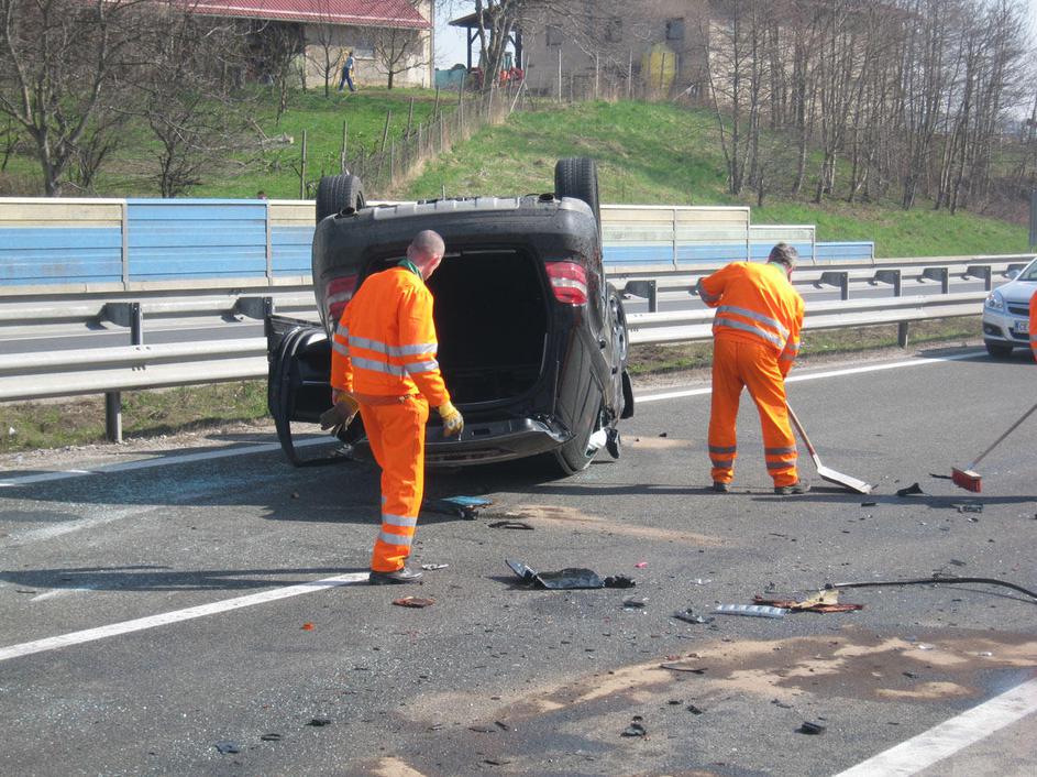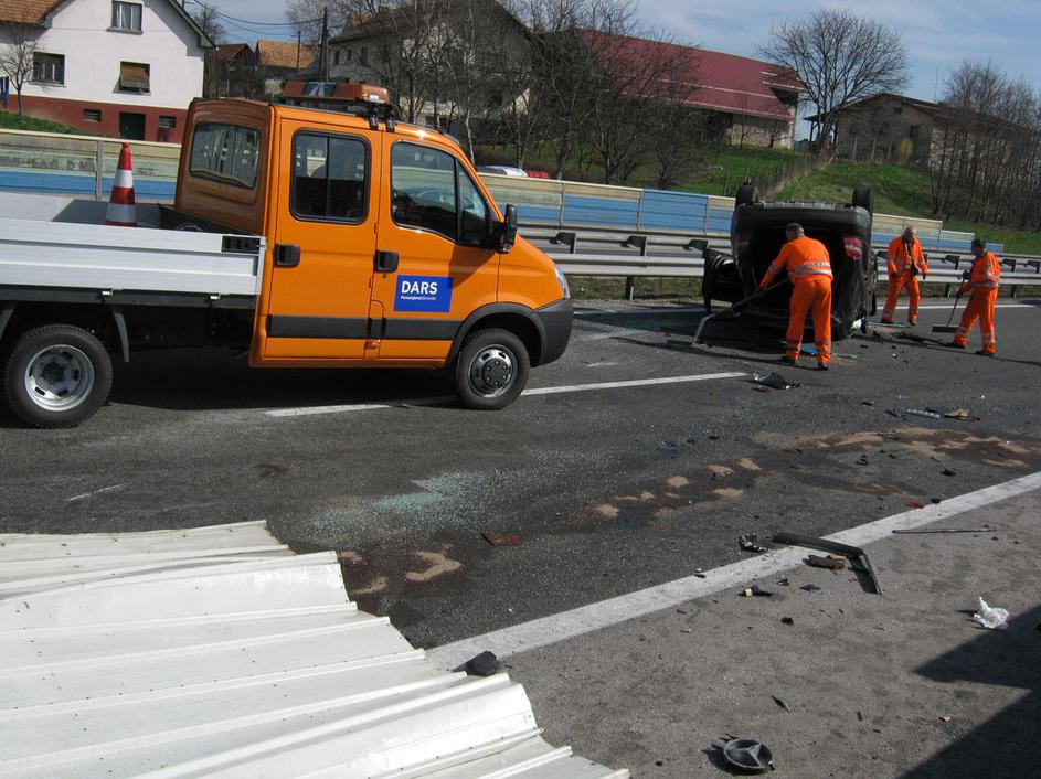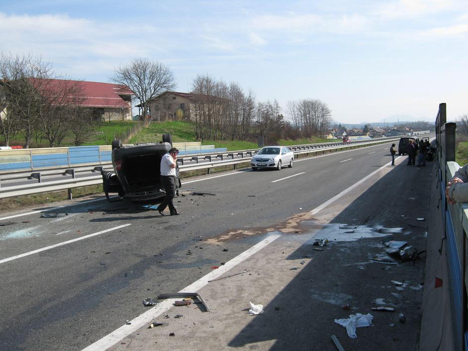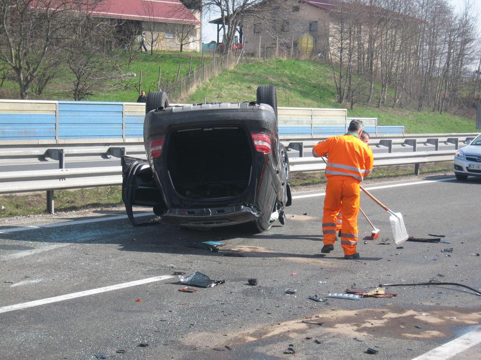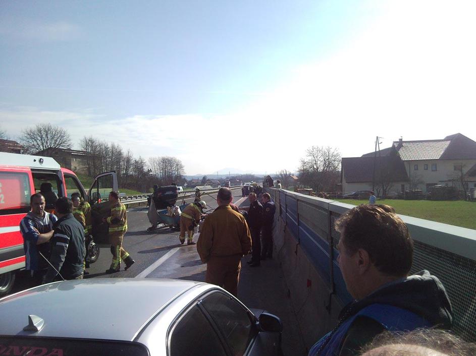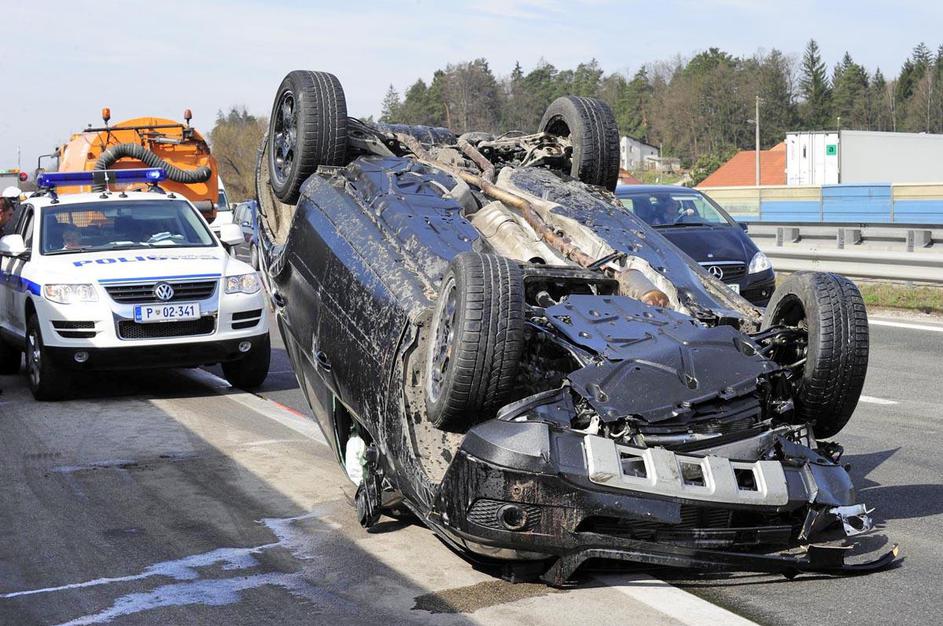 prometna nesreča, Celje, prevrnjeno vozilo, na strehi