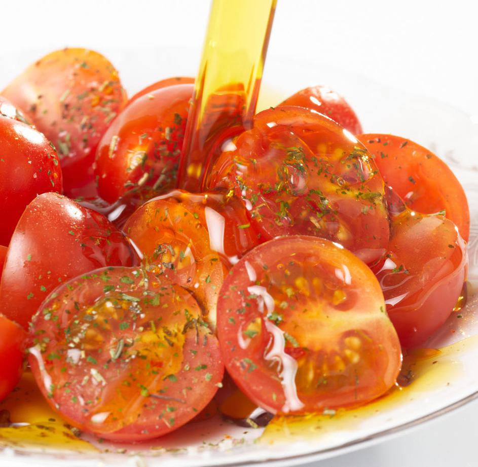 Paradižnik in olivno olje: Paradižnikovo solato bogato zabelite z olivnim oljem. Kombinacija je popo