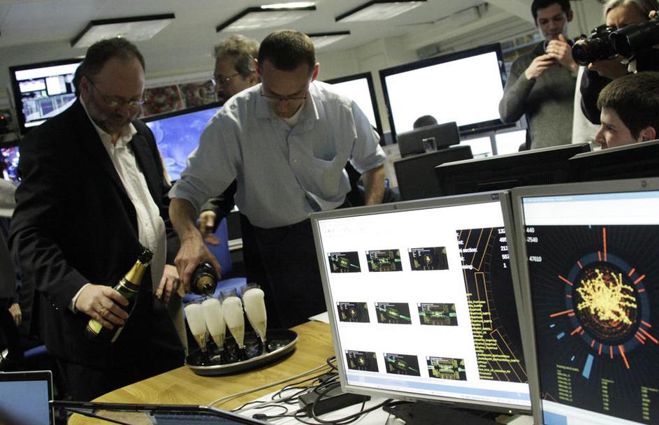 V Cernu naj bi s pomočjo velikega hadronskega trkalnika odkrili  božji delec. (F Žurnal24 V Cernu naj bi s pomočjo velikega hadronskega trkalnika odkrili  božji delec. (F