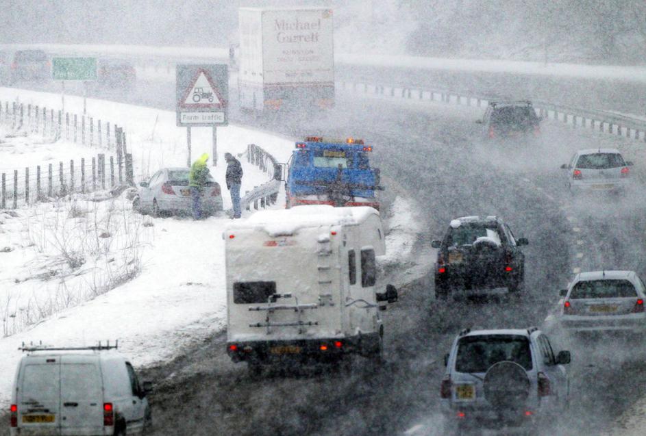 sneg, Velika Britanija, ceste, avtomobili