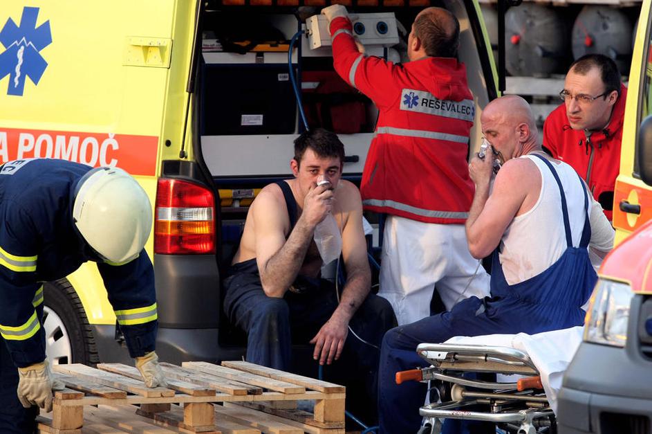 Poškodovani delavci, ki jih je ujel požar v Gorenju Tiki.