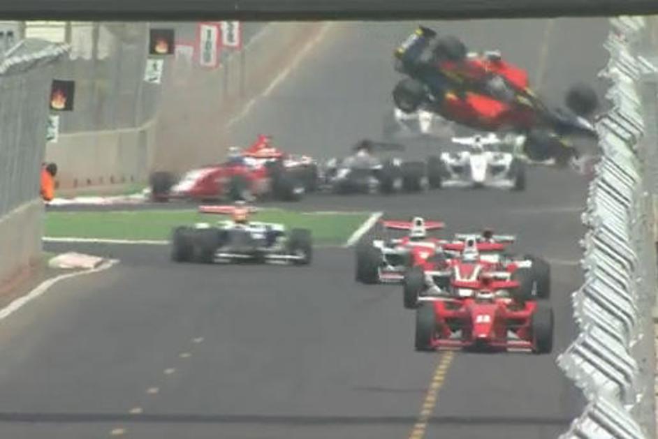 Grozljivo: dirkač poletel, a preživel