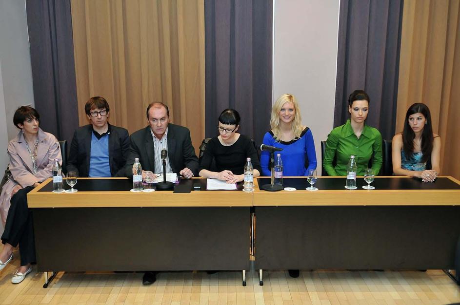 Z leve proti desni: Gordana Sredojević - Goga, urednica Obrazov, Aljoša Rebolj, predstavnik žirije,