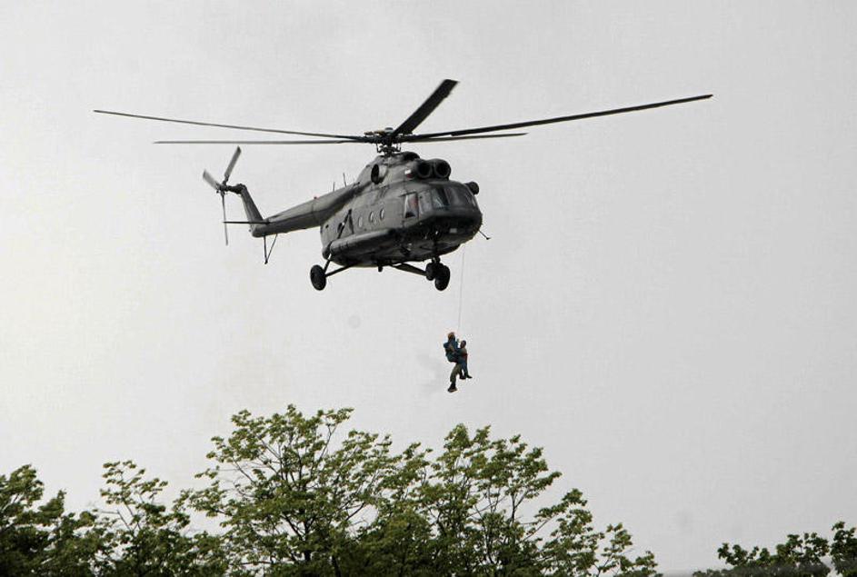 Ponekod je bila potrebna tudi posredovanje helikopterjev za prevoz poškodovanih ljudi.