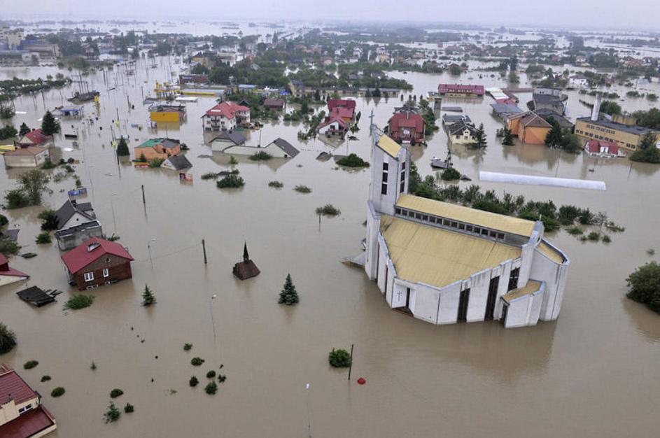Poplavljeno naselje Sandomierz na jugu Poljske.