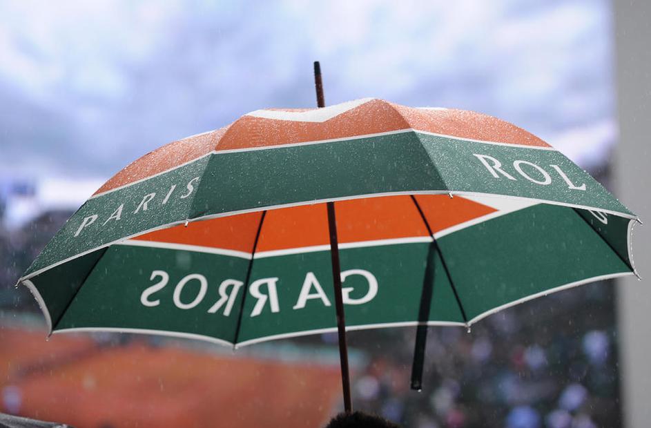 Dežnik je danes na igriščih Roland Garrosa zelo priporočljiv.